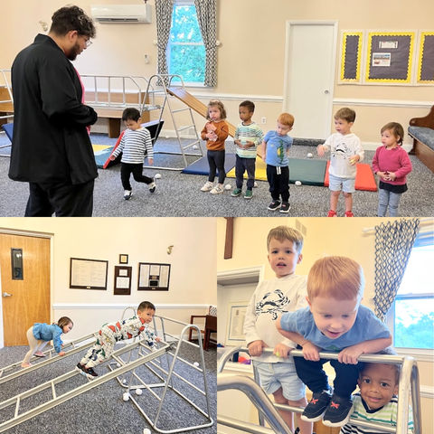 require extra practice. Various pieces of equipment are set up to provide fun yet appropriate